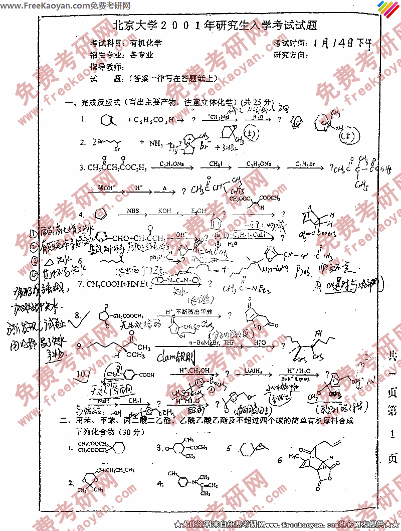 相关话题/北京大学 考研真题 有机化学