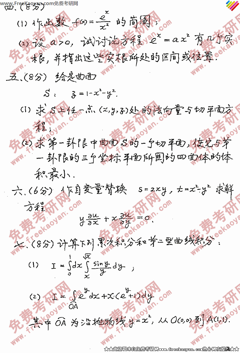 北京大学2002年考研真题-高等数学(2)