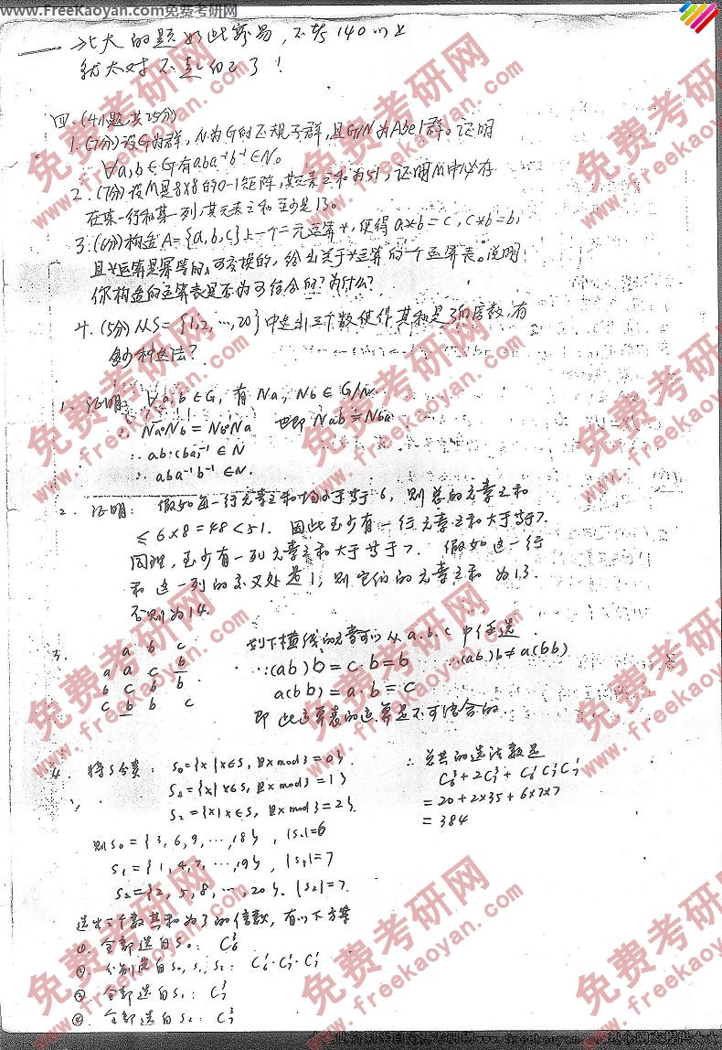 专业课考研经验 本站小编 FreeKaoyan 2018-01-22北京大学2001年考研真题-计算机数学基础