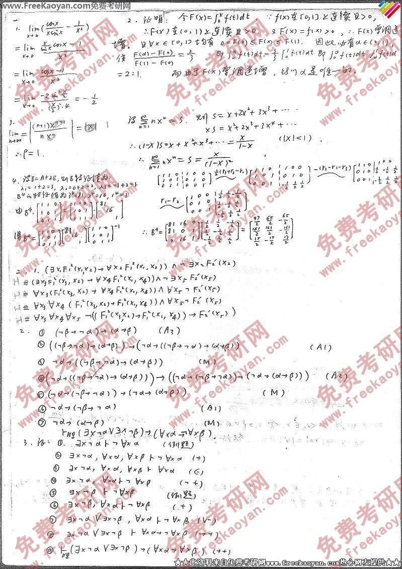 专业课考研经验 本站小编 FreeKaoyan 2018-01-22北京大学2000年考研真题-计算机数学基础