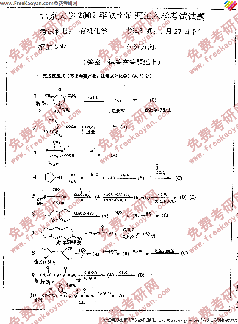 专业课考研经验 本站小编 FreeKaoyan 2018-01-22北京大学2000年考研真题-有机化学
