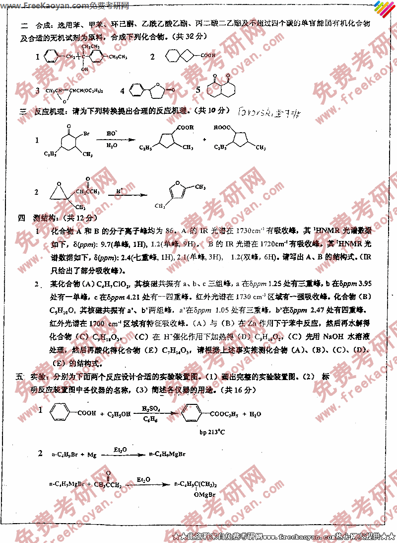 专业课考研经验 本站小编 FreeKaoyan 2018-01-22北京大学2000年考研真题-有机化学