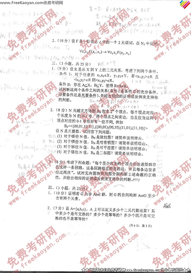 专业课考研经验 本站小编 FreeKaoyan 2018-01-22北京大学2000年考研真题-计算机数学基础