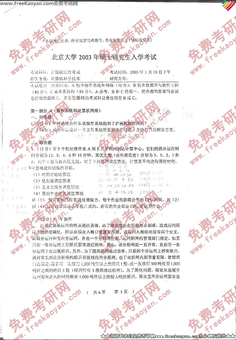 专业课考研经验 本站小编 FreeKaoyan 2018-01-22北京大学2003年考研真题-计算机专业基础