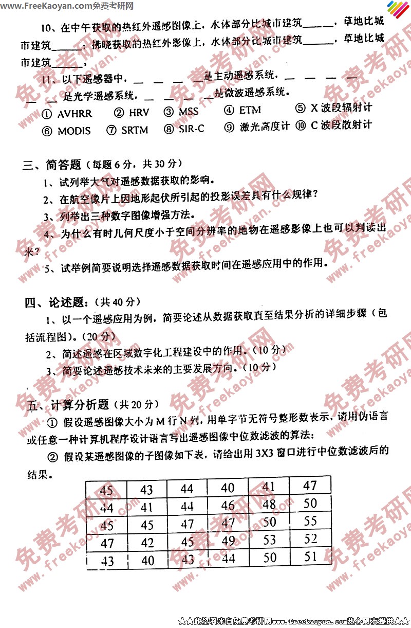 北京大学2003年考研真题-遥感概论(2)