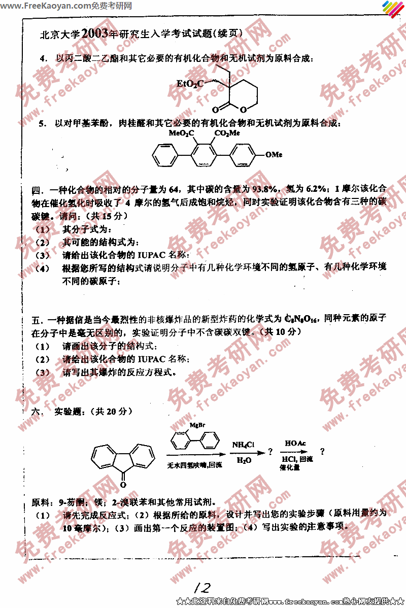 专业课考研经验 本站小编 FreeKaoyan 2018-01-22北京大学2002年考研真题-有机化学