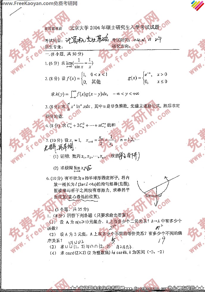 相关话题/考研真题 北京大学 专业基础 计算机