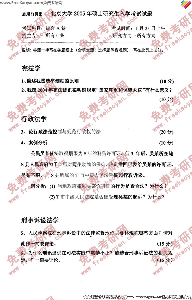 北京大学2005年考研真题-综合A卷(所有专业)(2)