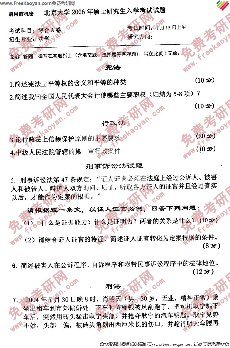 专业课考研经验 本站小编 FreeKaoyan 2018-01-22北京大学2005年考研真题-综合A卷(所有专业)