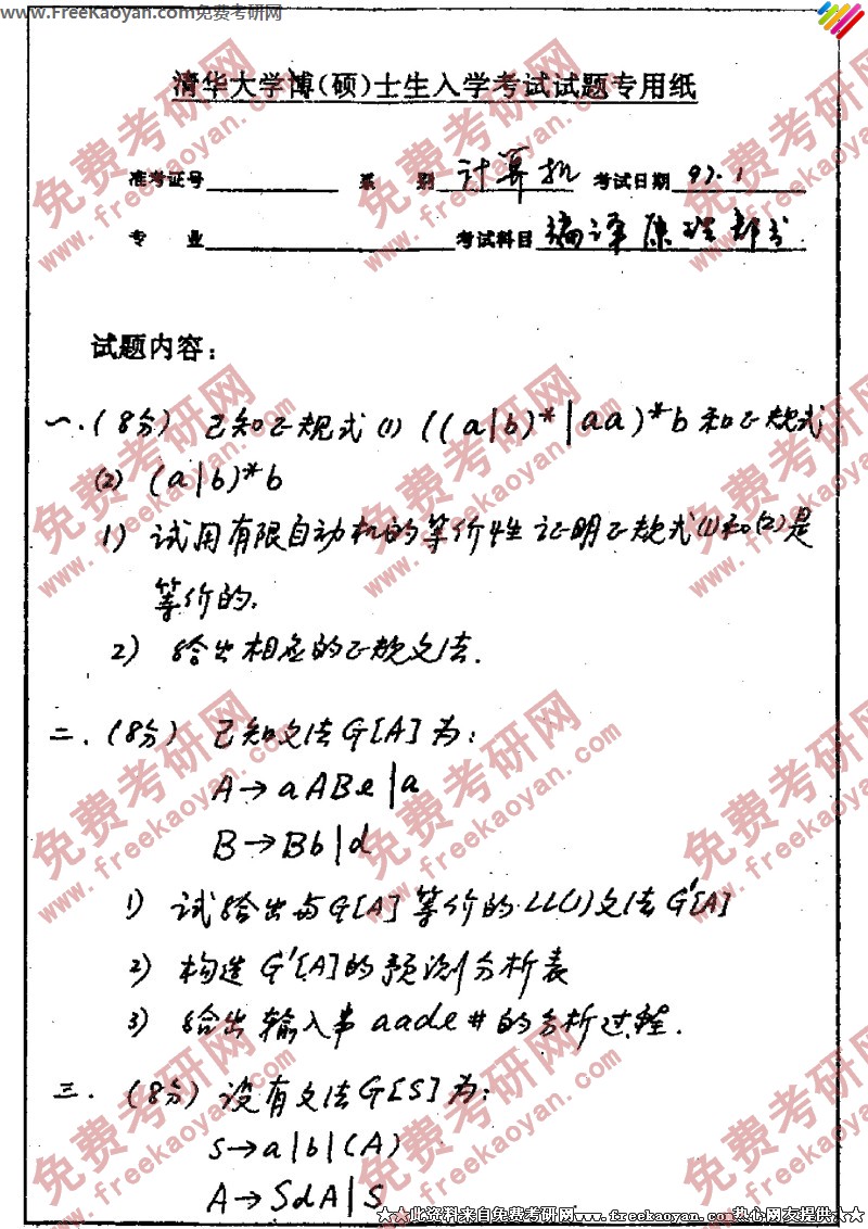 相关话题/清华大学 考研真题 计算机