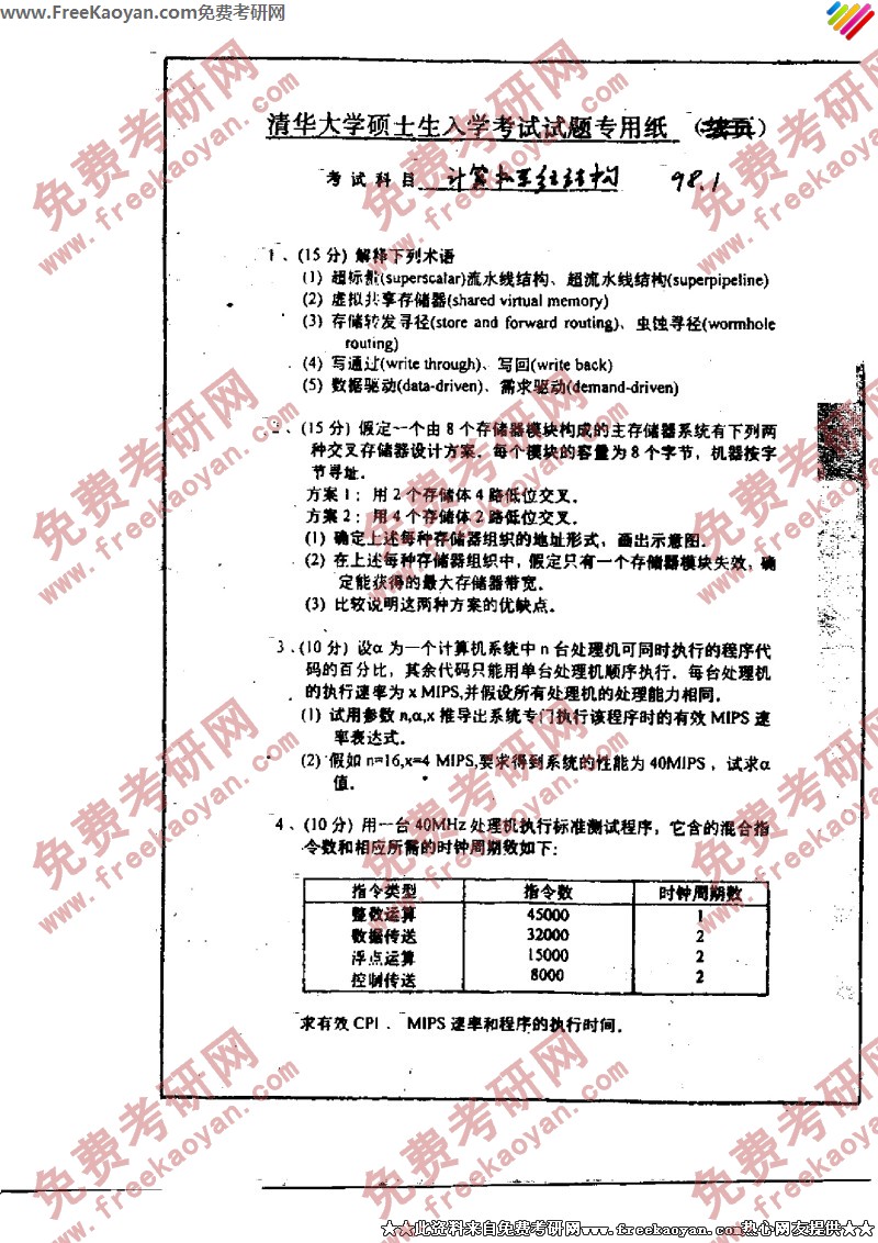 清华大学1998年考研真题-计算机考研试题