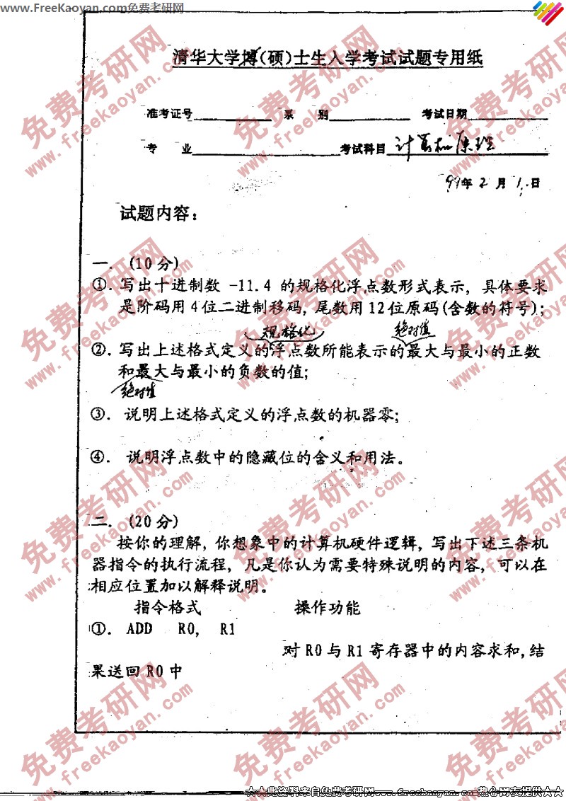 相关话题/清华大学 考研真题 计算机