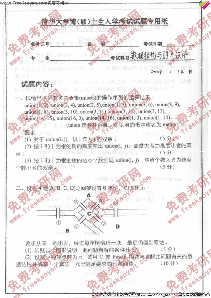 专业课考研经验 本站小编 FreeKaoyan 2018-01-22清华大学2000年考研真题-数据结构试题与分析