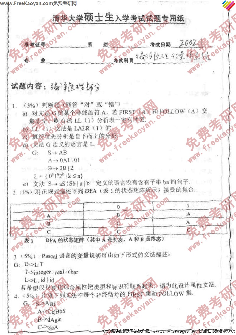 专业课考研经验 本站小编 FreeKaoyan 2018-01-22清华大学2001年考研真题-计算机考研试题