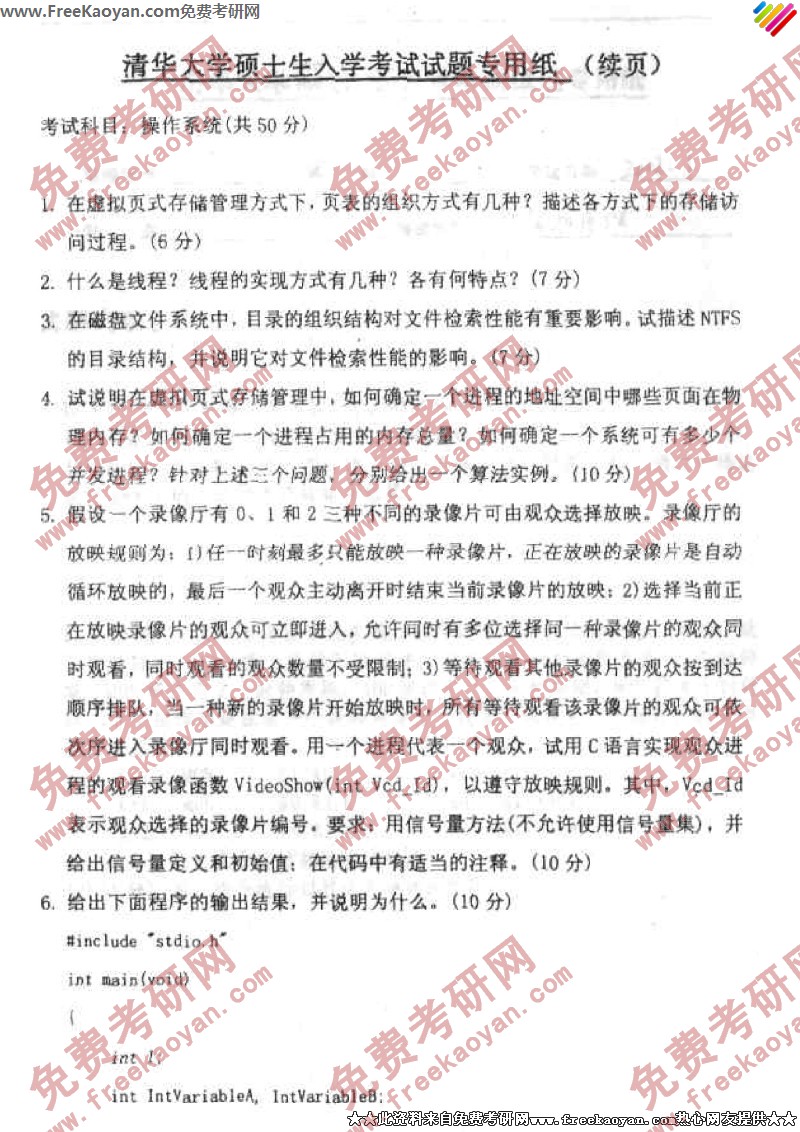 专业课考研经验 本站小编 FreeKaoyan 2018-01-22清华大学1998年考研真题-操作系统