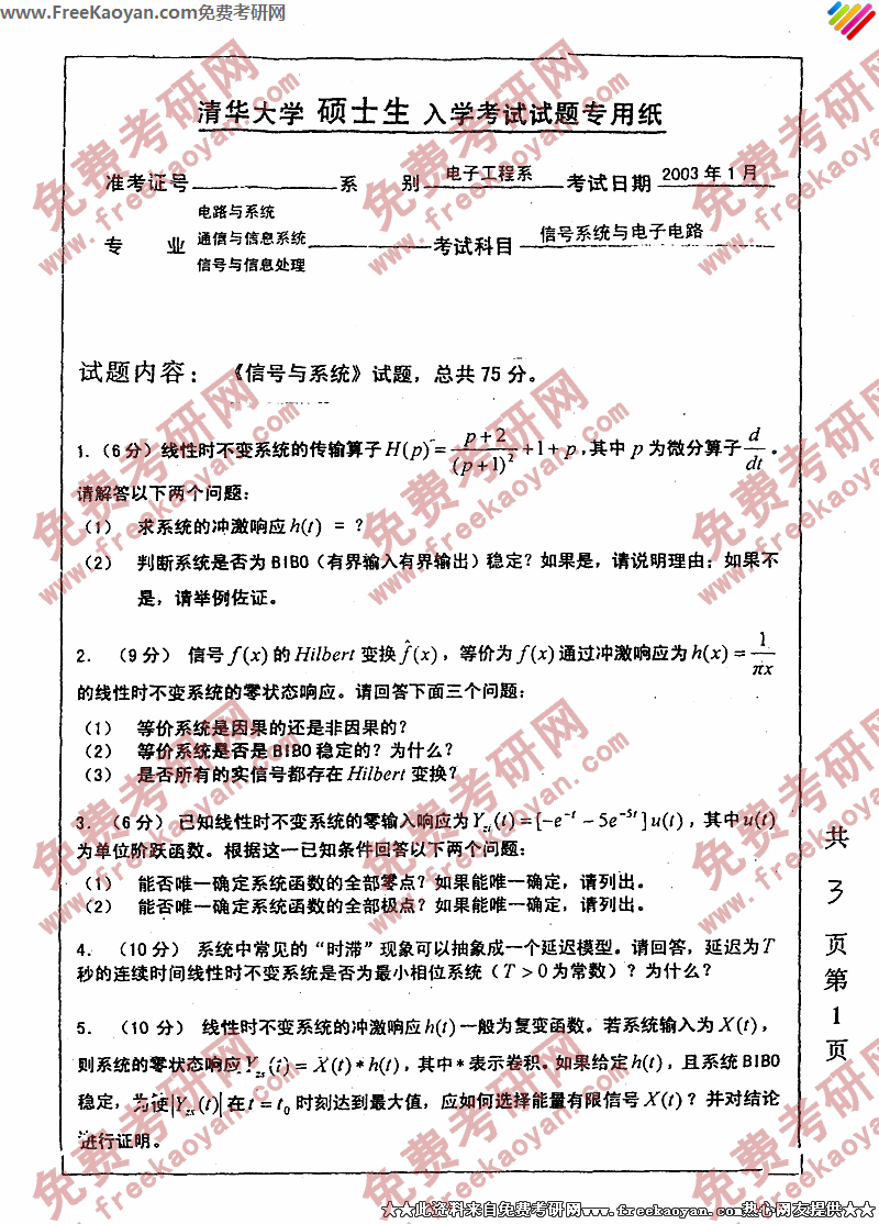 相关话题/信号 考研真题 清华大学 系统 电子电路