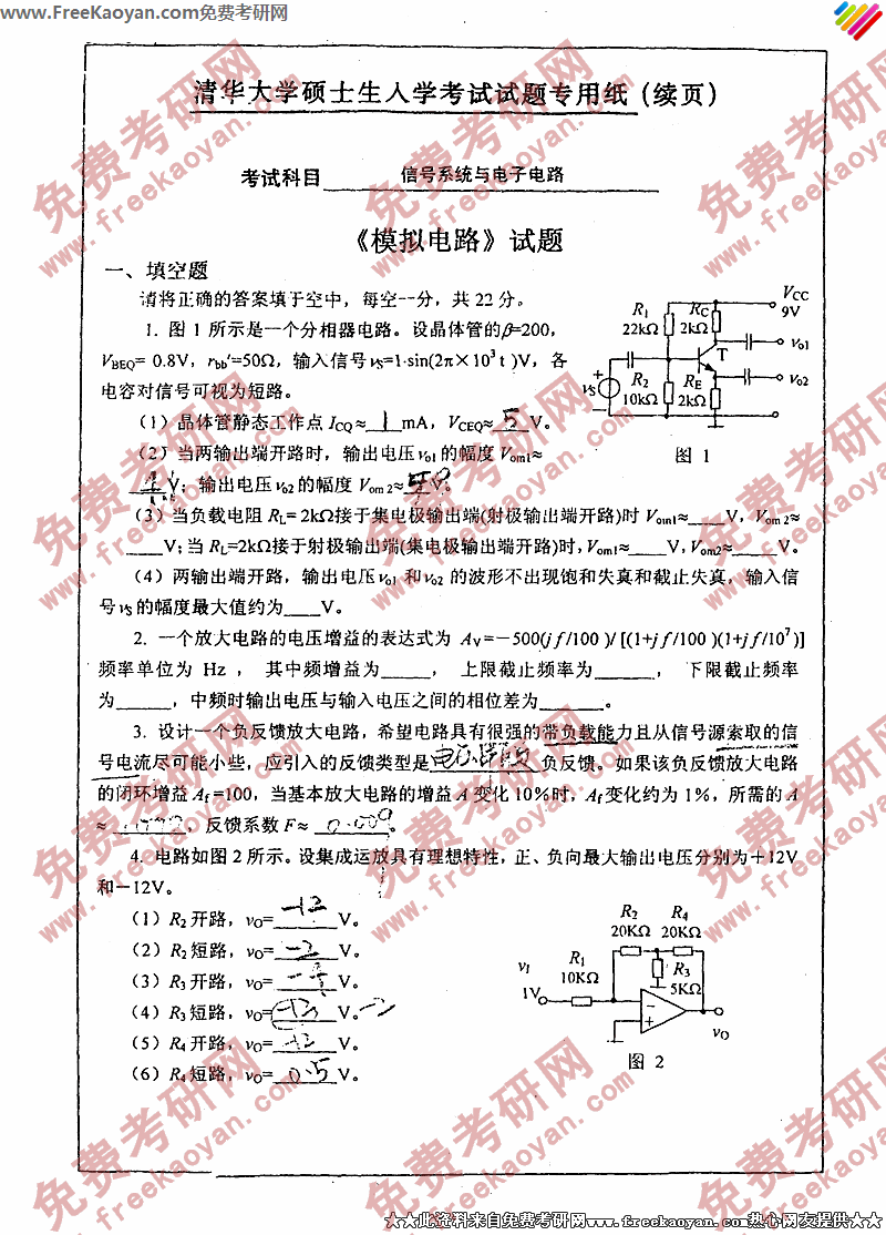 相关话题/信号 考研真题 清华大学 系统 电子电路