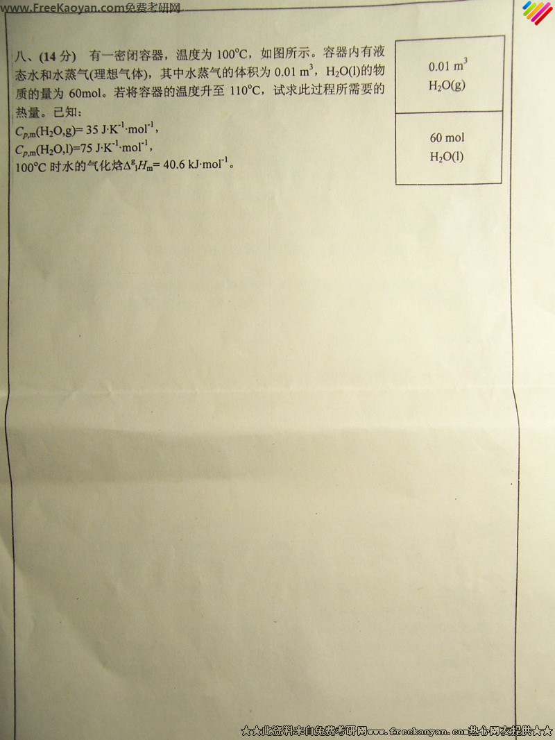 专业课考研经验 本站小编 FreeKaoyan 2018-01-22清华大学2000年考研真题-物理化学