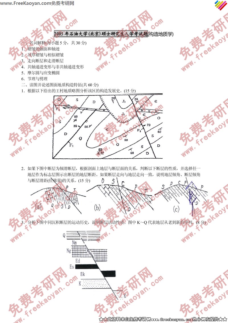 专业课考研经验 本站小编 FreeKaoyan 2018-01-22中国石油大学(北京)2003年考研真题-构造地质学