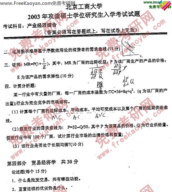 • 首都经济贸易大学2003年考研真题-经济学