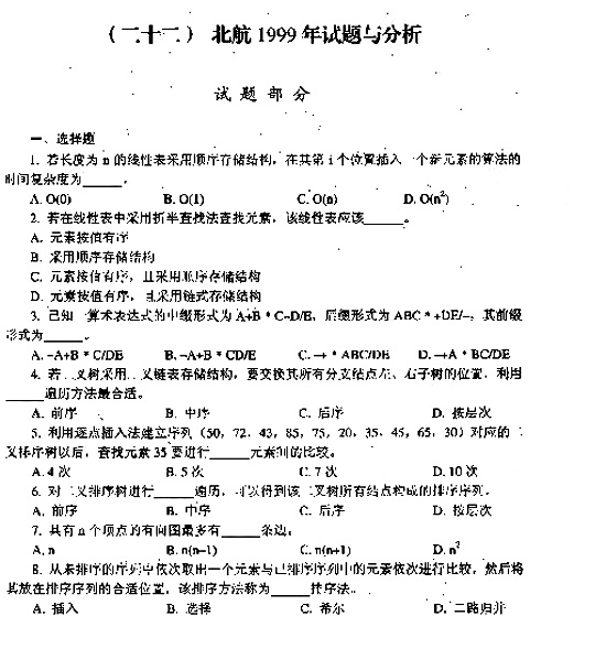 相关话题/考研真题 北京 试题 数据结构 航天航空