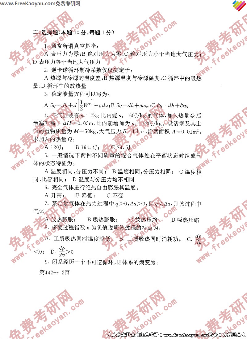 北京航天航空大学2000年考研真题-工程热力学(2)
