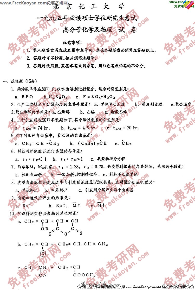 相关话题/考研真题 北京化工大学 物理 高分子化学