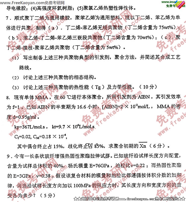 相关话题/考研真题 北京化工大学 物理 高分子化学