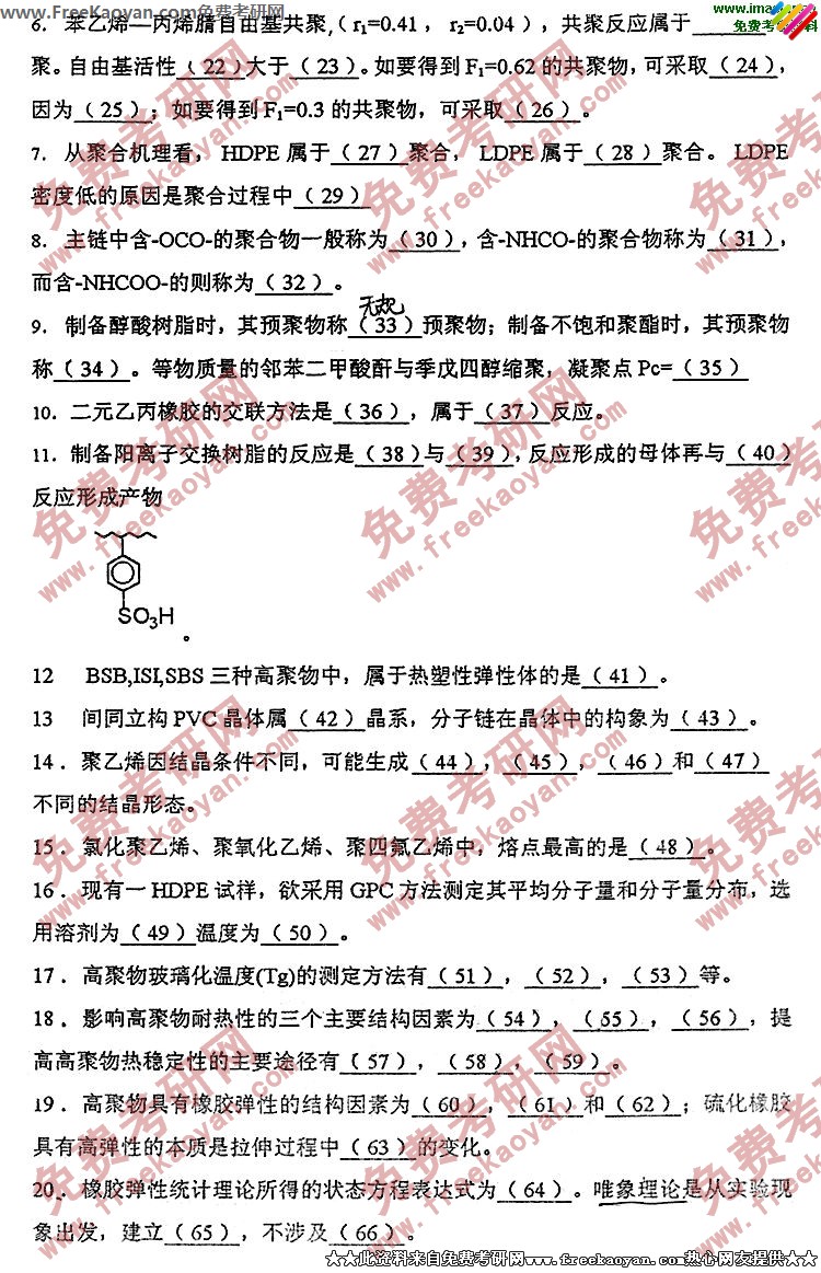 相关话题/考研真题 北京化工大学 物理 高分子化学