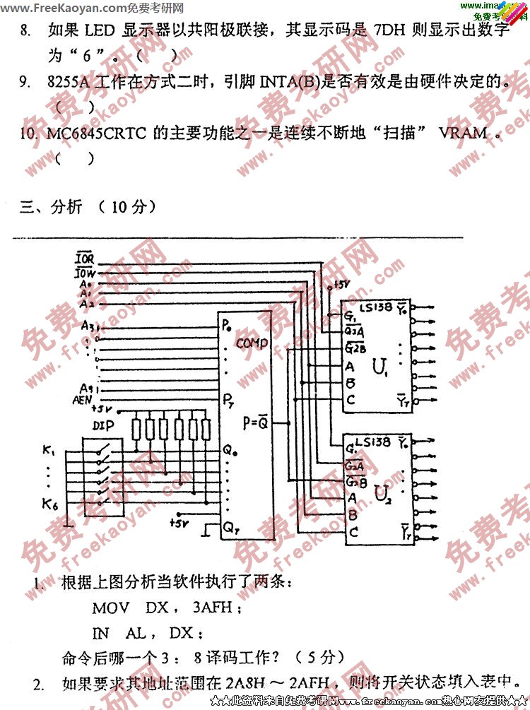 专业课考研经验 本站小编 FreeKaoyan 2018-01-23北京航天航空大学2005年考研真题-计算机技术基础