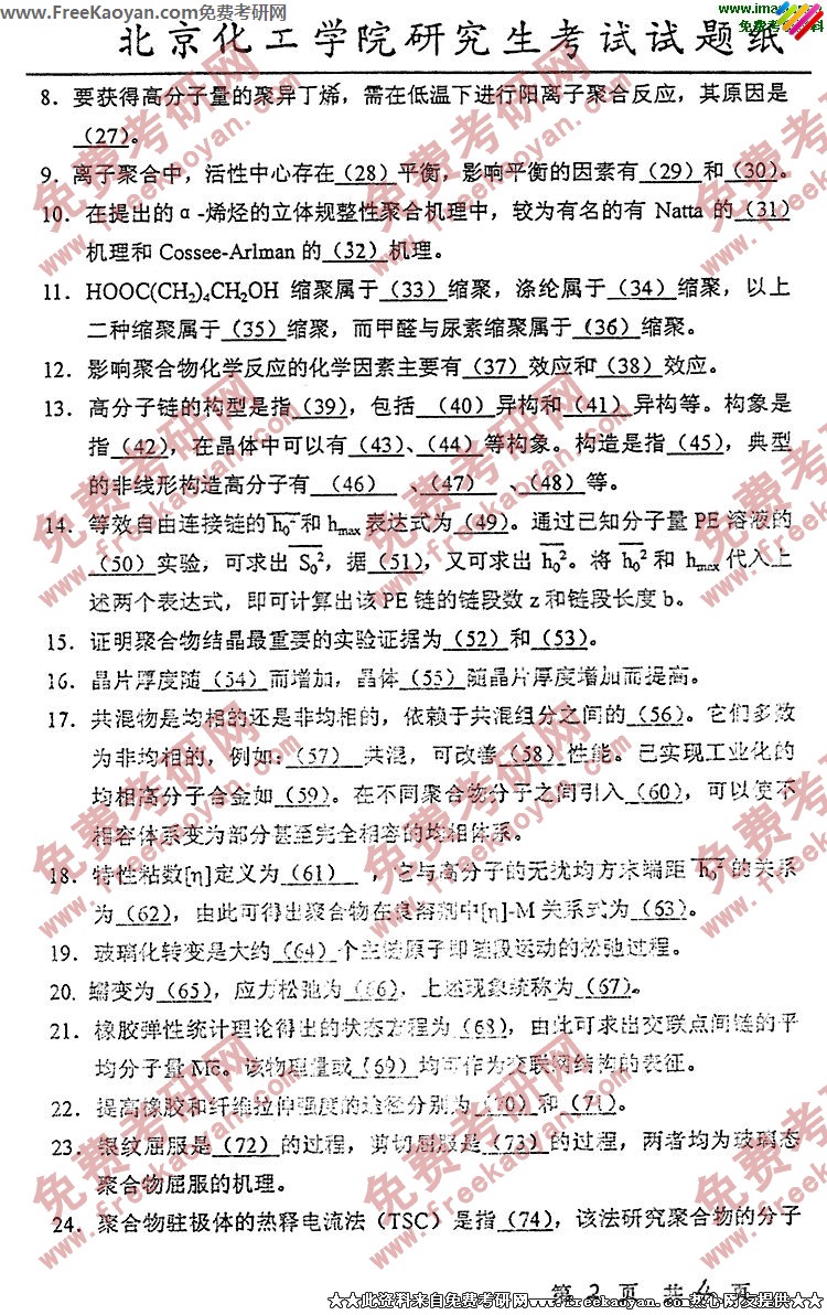 相关话题/考研真题 北京化工大学 物理 高分子化学