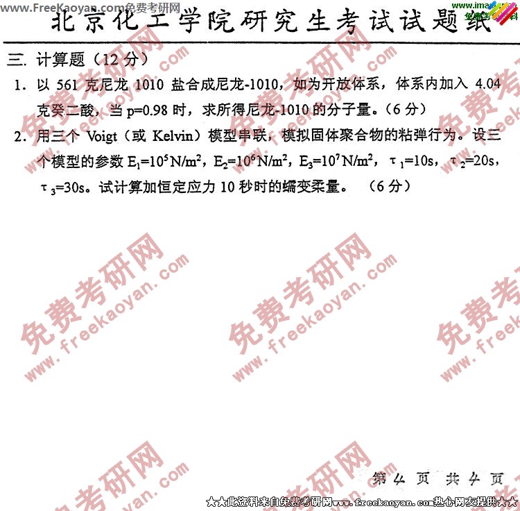 相关话题/考研真题 北京化工大学 物理 高分子化学
