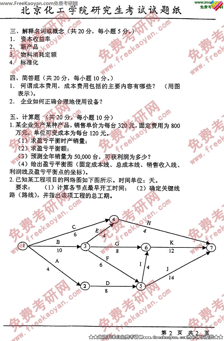 专业课考研经验 本站小编 FreeKaoyan 2018-01-23北京化工大学1998年考研真题-工业企业管理