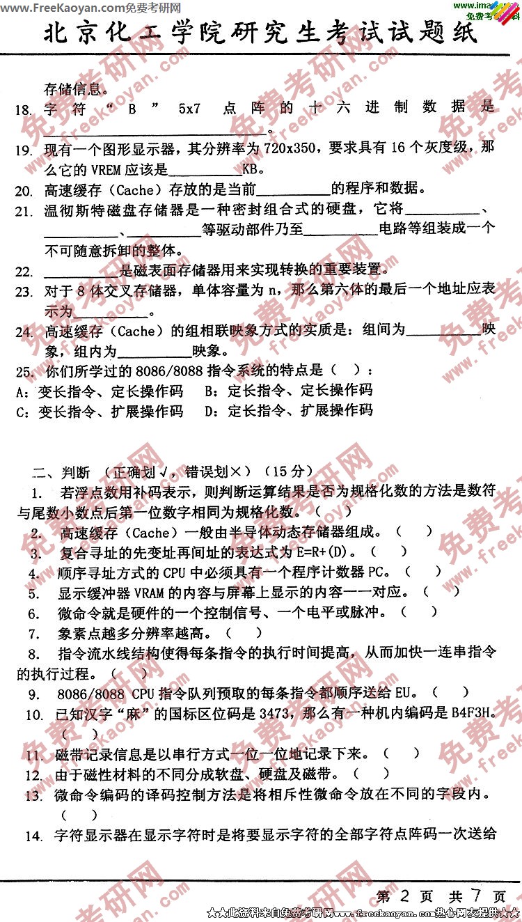 专业课考研经验 本站小编 FreeKaoyan 2018-01-23北京航天航空大学2005年考研真题-计算机技术基础
