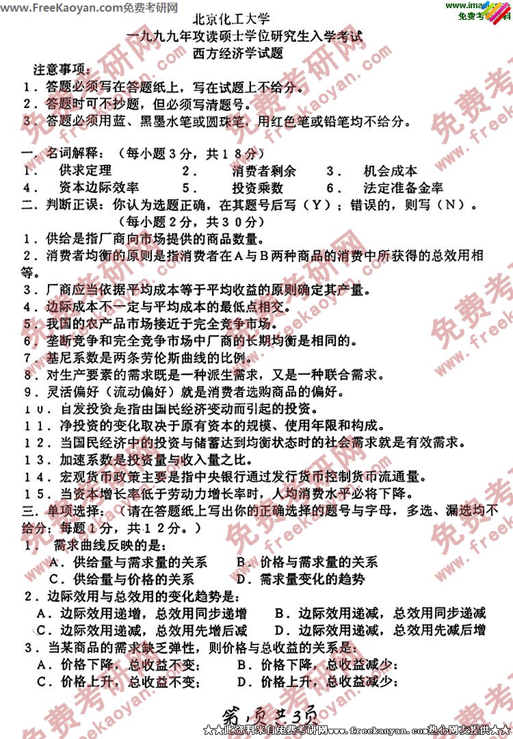 相关话题/北京化工大学 考研真题 西方经济学