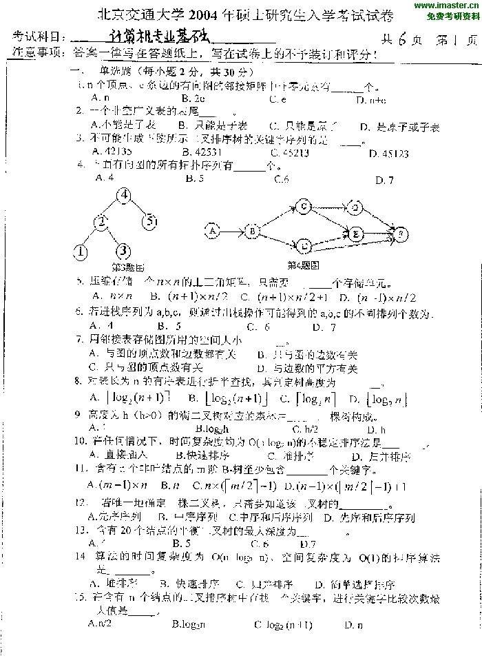 注意事项 1. 答案必须写在答题纸上,写在试卷上均不给分。 2. 答题时可不抄题,但必须写清题号。 3. 答题必须用蓝、黑墨水笔或圆珠笔,用红色笔或铅笔均不给分。 计算机组成原理:(60分) 一 填空或判断对错(对,画“√”,错则画“×”)(30分) 1. 设x=-67/128,字长N=8(包括一位 ...