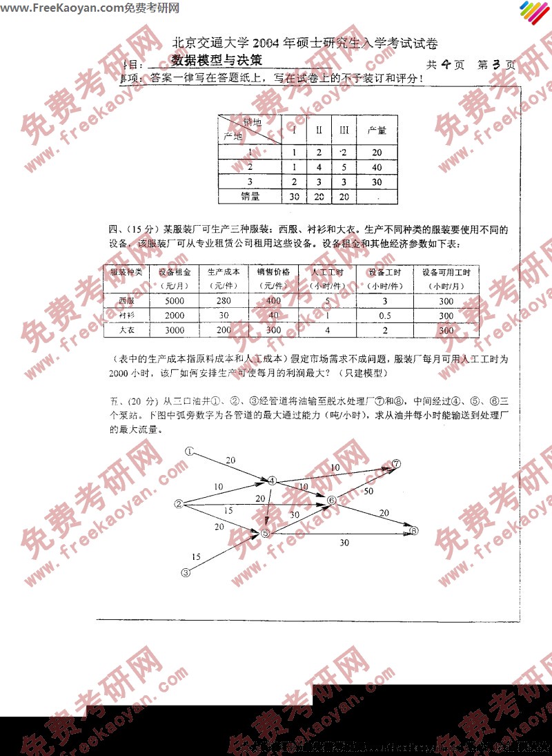 北京交通大学2004年考研真题-物流管理与工程数据模型与决策(3)