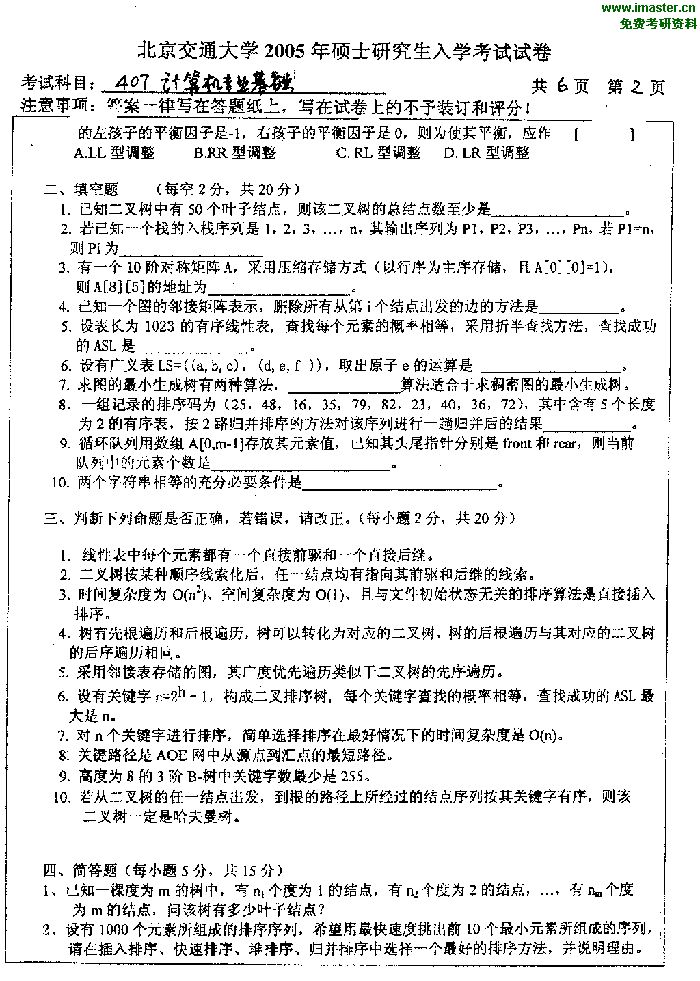 相关话题/考研真题 北京交通大学 基础 计算机