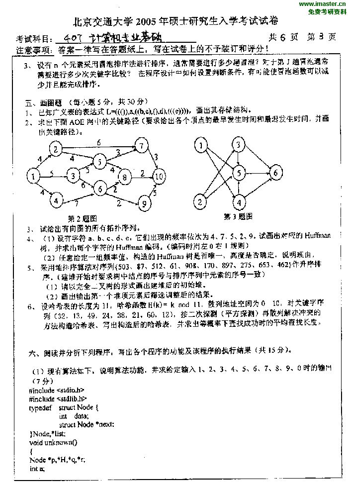 专业课考研经验 本站小编 FreeKaoyan 2018-01-23北京交通大学2003年考研真题-计算机基础