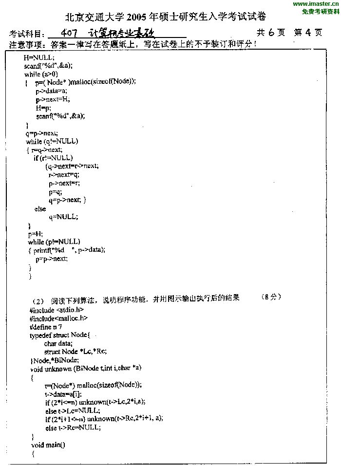 专业课考研经验 本站小编 FreeKaoyan 2018-01-23北京交通大学2003年考研真题-计算机基础