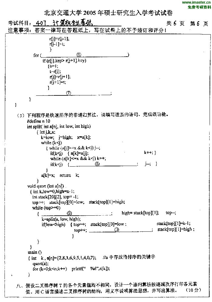 专业课考研经验 本站小编 FreeKaoyan 2018-01-23北京交通大学2003年考研真题-计算机基础