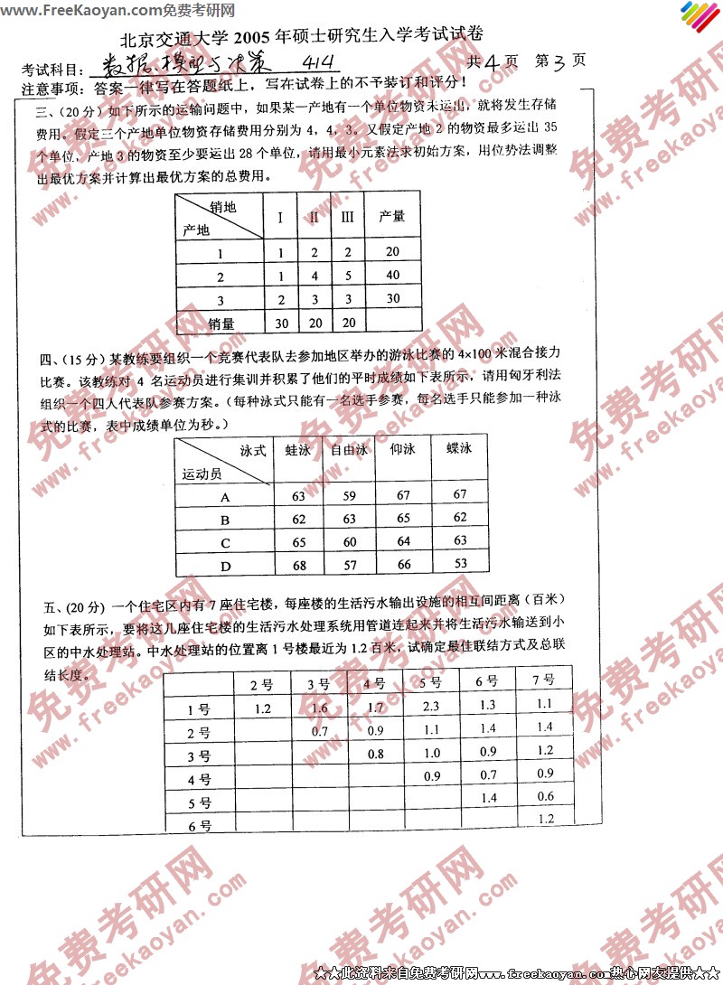 北京交通大学2005年考研真题-物流管理与工程数据模型与决策(3)