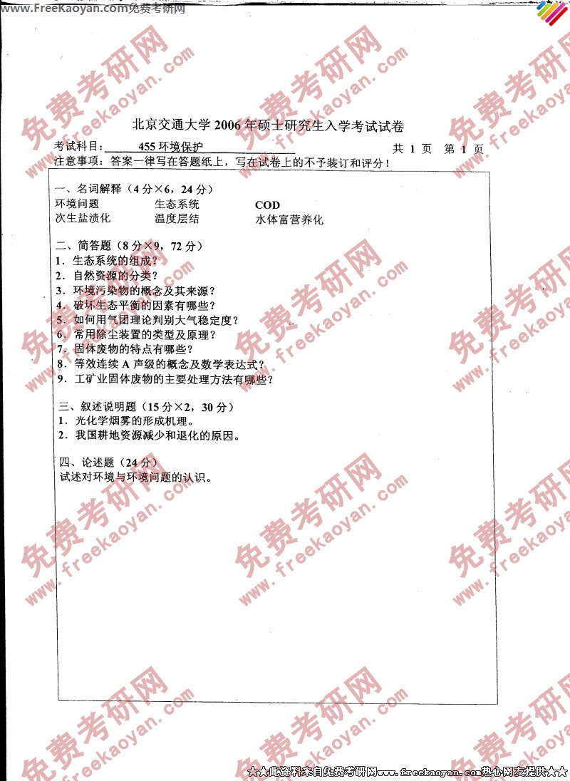 专业课考研经验 本站小编 FreeKaoyan 2018-01-23北京交通大学2005年考研真题-环境保护