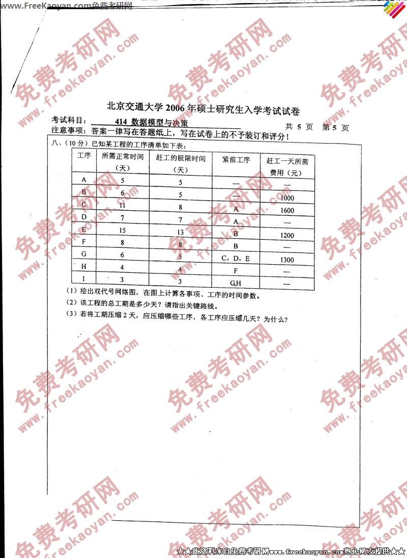专业课考研经验 本站小编 FreeKaoyan 2018-01-23北京交通大学2005年考研真题-物流管理与工程数据模型与决策