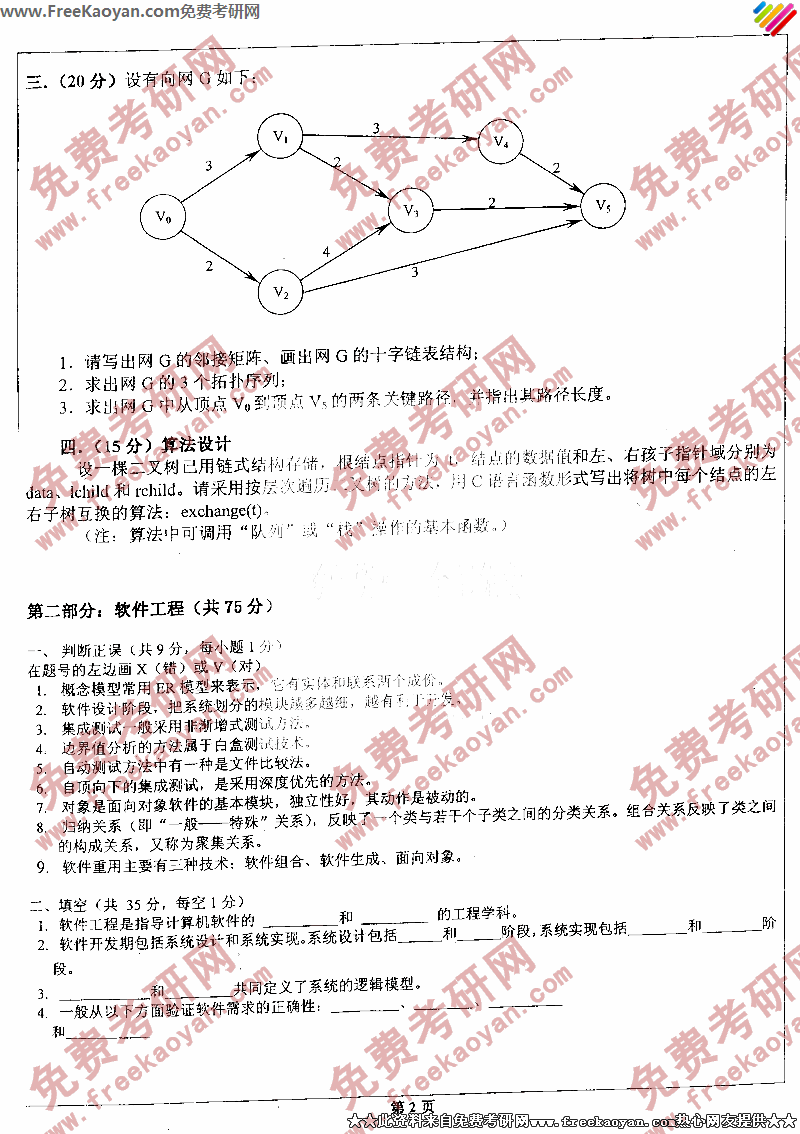 北京科技大学2004年考研真题-数据结构及软件工程(2)