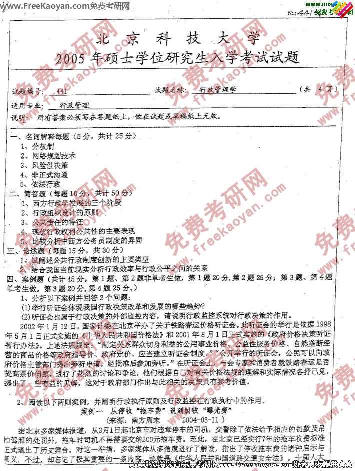 专业课考研经验 本站小编 FreeKaoyan 2018-01-23北京科技大学2004年考研真题-行政管理学
