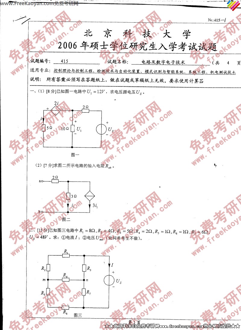 专业课考研经验 本站小编 FreeKaoyan 2018-01-23北京科技大学2004年考研真题-单考数学
