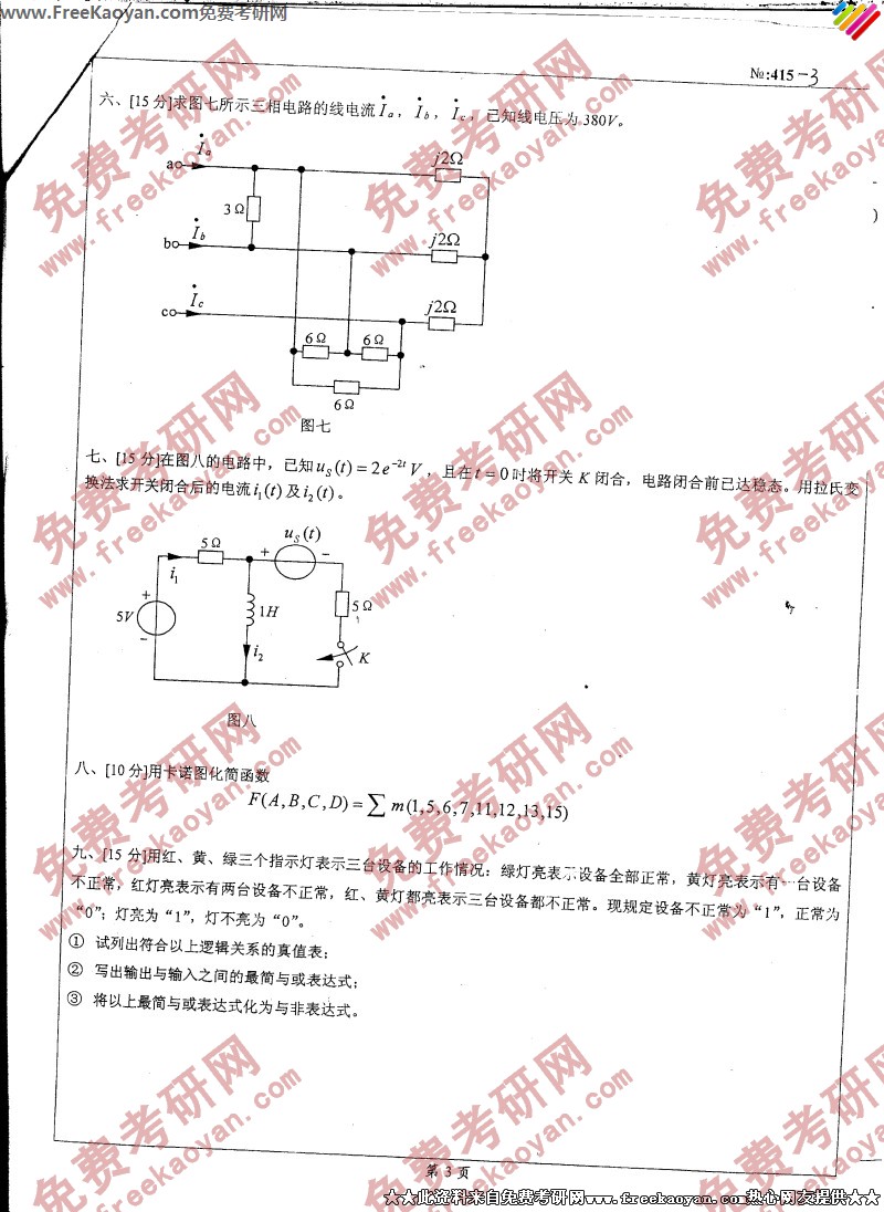 北京科技大学2006年考研真题-电路及数字电子技术(3)