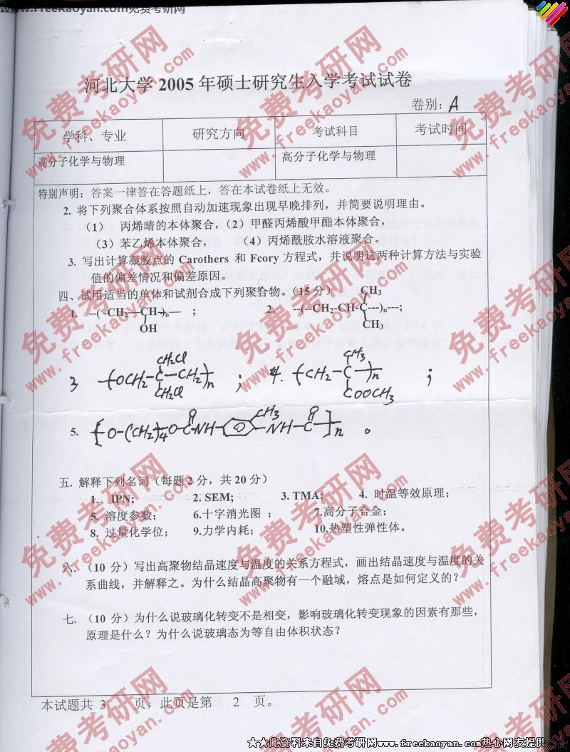 专业课考研经验 本站小编 FreeKaoyan 2018-01-23河北大学2005年考研真题-分析化学