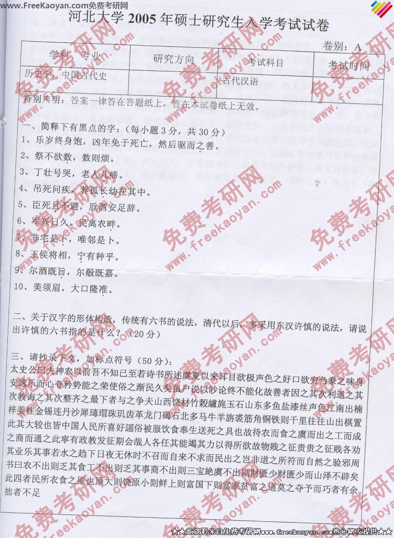专业课考研经验 本站小编 FreeKaoyan 2018-01-23河北大学2005年考研真题-翻译与写作